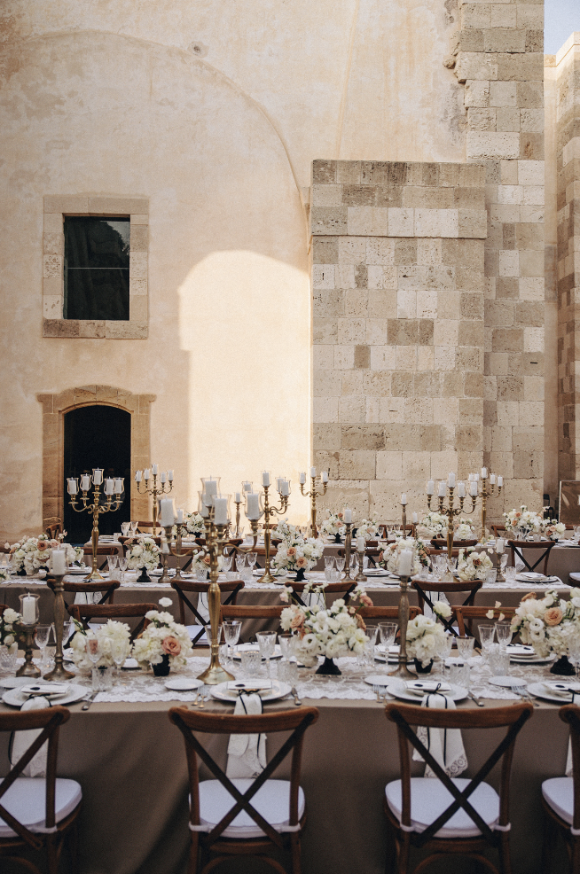 A 10th wedding anniversary in the breathtaking Ortigia in Sicily was a charming 2 day affair, infused with Italian Glamour. The first evening featured S & B's vow renewals in the historic Castello Maniacewith courtyard. This followed by a breathting banquet dinner, tables adorned with lace and lit by candlelight. Night two's Tales of Timeless influence of Ortigia where guests dined under the stars before being transported by DJ Gallivanter who created a spine tingling atmostphere under the enchanting tree to the early hours of the morning.